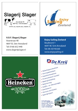 V.O.F. Slagerij Slager Enjoy Sailing Zeeland Voorstraat 48 Boulevard 1 4697 EL Sint-Annaland 4697 BC Sint-Annaland Tel: 0166-652 448 Tel: 06-50745560 www.slagerijslager.nl www.enjoysailing.nl