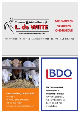 Vleesboerderij De Hofstede BDO Roosendaal, Tolweg 4 accountant & 4697 PD Sint-Annaland belastingadviseur Tel: 06-10842884 Jan van Eijckplein 2 4703 GV Roosendaal www.vleesboerderijdehofstede.nl Tel: 0165-598 700 www.bdo.nl